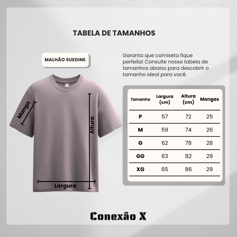 Modelagem Oversized: Com um caimento perfeito, a camiseta proporciona conforto sem abrir mão de um estilo moderno e despojado, pensado para o público urbano.